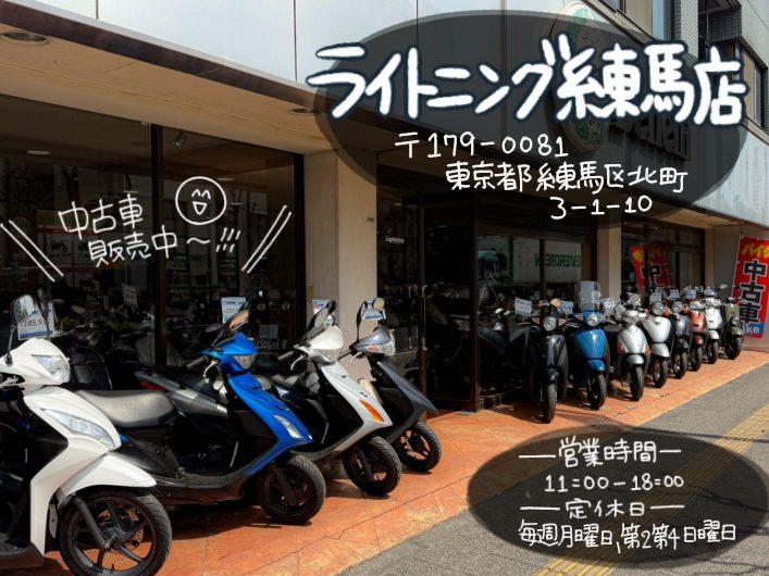 板橋区のバイク屋 03-6915-7377東京都板橋区桜川2-28-26 バイクの事ならお気軽にご相談ください! 整備・修理・オイル交換… 点検・車検… 車両(新車・中古車)販売… SUZUKI販売店 KYMCO正規取扱店 お知らせ 1/10(土)はツーリングイベントのため休みます。2026年1月8日 年末年始期間中の営業について2025年12月13日 12/13(土)ツーリングイベントのため休みます。2025年12月12日 11/8(土)ツーリングイベントのため休みます。2025年11月5日 10/25(土)ツーリングイベントのため休みます。2025年10月24日 ▪P38note 練馬店 ライトニング練馬店(ベネリ東京練馬) 練馬店にて、原付メインで中古車販売中♪♪
